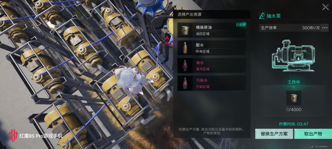 ①分别放置每组的3个抽水泵;设置产出方案;注意默认是抽水,一定要设置成抽油!