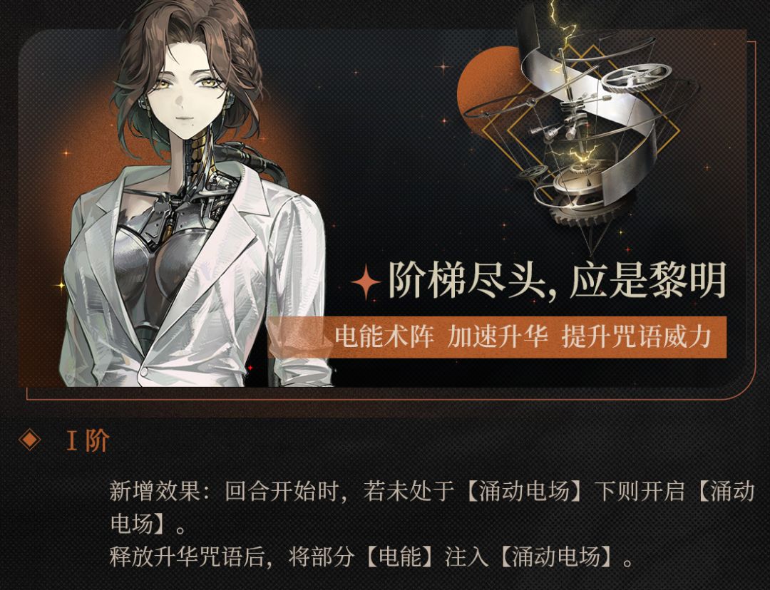 词条4是相对重要的,升华咒语不消耗电能了,但是敌方退场也不加电能了。