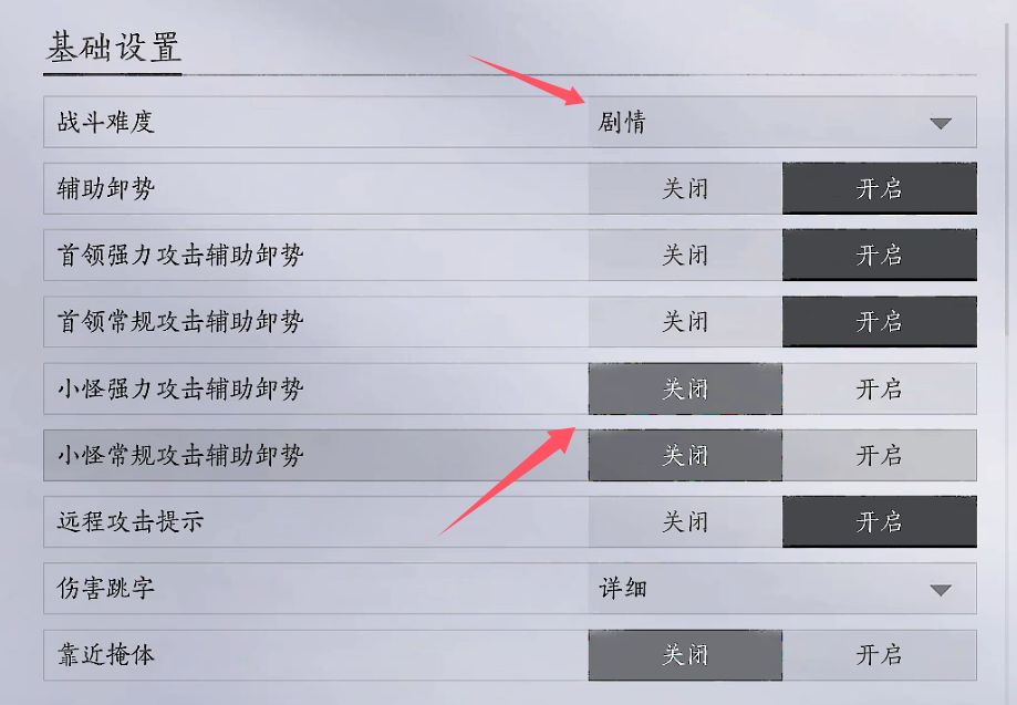 难度为剧情,辅助卸势关闭,因为小怪的频繁攻击会一直触发辅助卸势,会影响操作,如果实在打不过再调回来就行