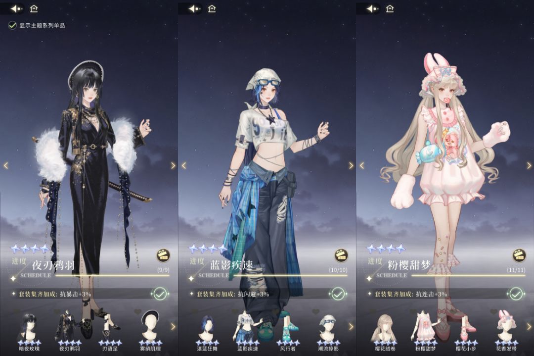 集齐「粉樱甜梦」套装可获得抗连击加成。