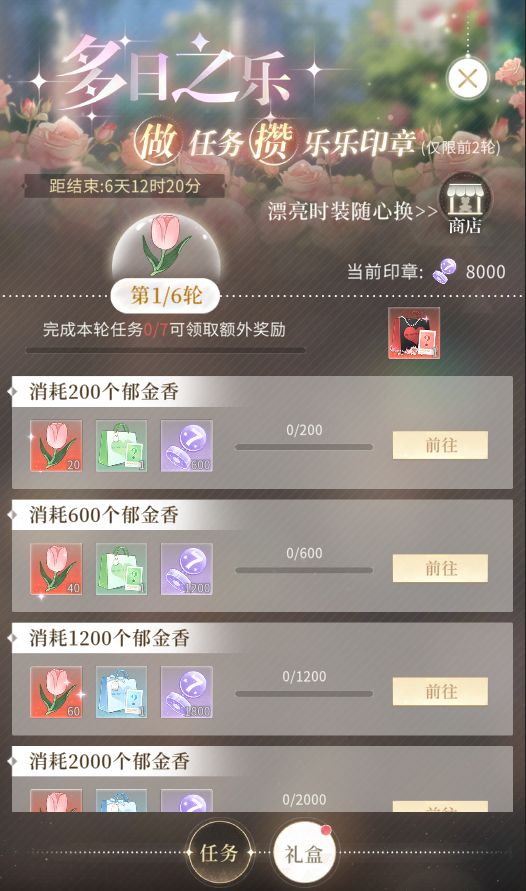 累计消耗任务共计六轮,每轮奖励不同,前两轮次奖励中包含“乐乐印章”。