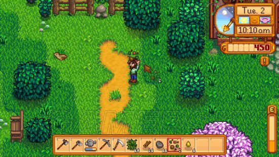 Stardew Valley中的疲劳度显示在右下,初期共有270的疲劳值。钓鱼,砍树,战斗,浇灌,耕地都会消耗角色的疲劳度,疲劳度以绿色-黄色-红色进行显示,在低疲劳的情况下,在疲劳度的上方会出现满头大汗的标示,可通过消耗物,去SPA来恢复,而一天的结束,通过睡眠也能够恢复疲劳度。如果角色在劳动过程中,累晕,则会自动去睡觉,在后一天早上醒来之后,会大量恢复。