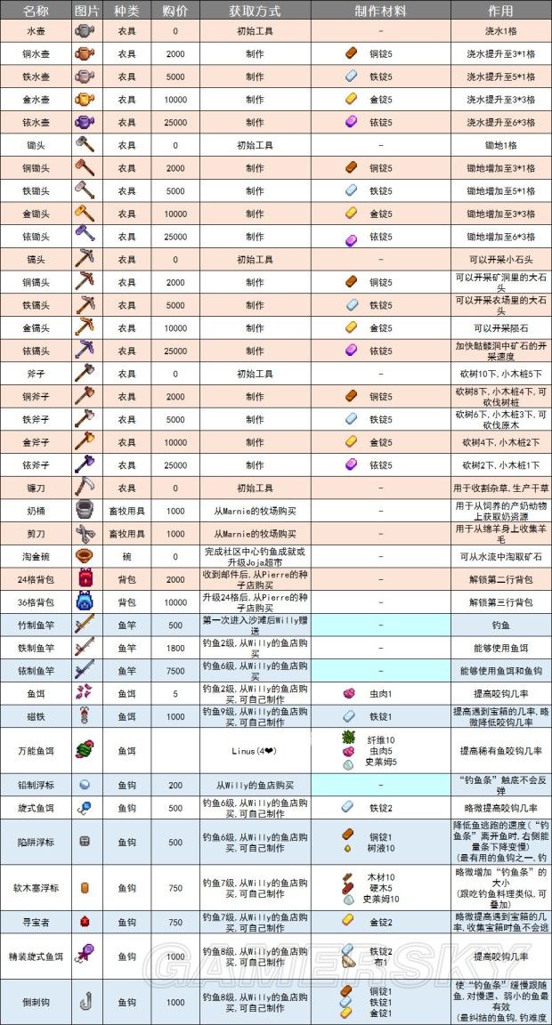 注1:1份鱼饵合成材料可以做出5个鱼饵;