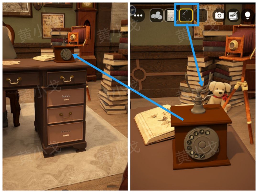 25.点击书桌上的电话,放上【听筒】