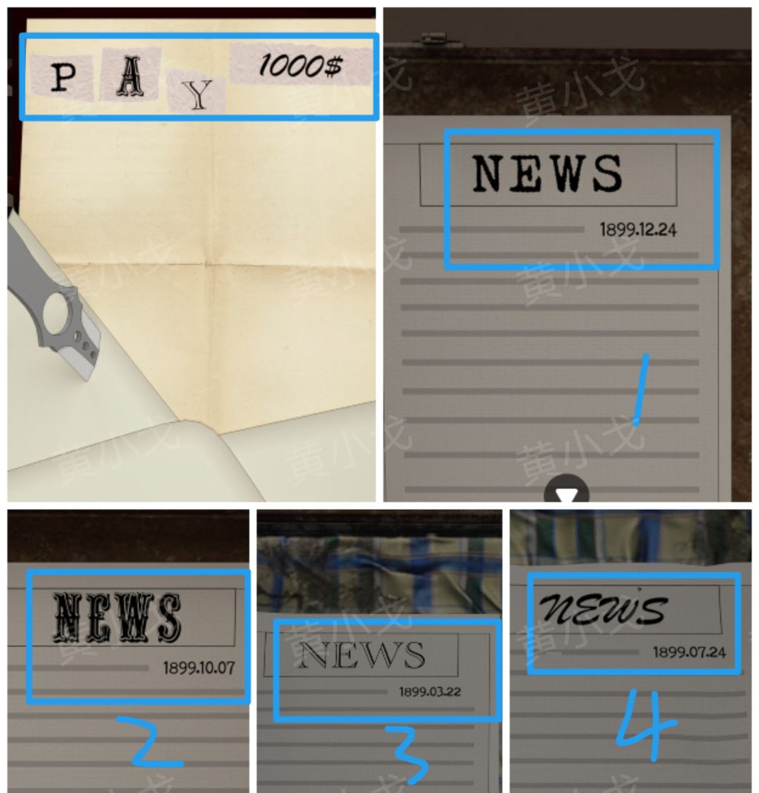 🔷解谜思路:①报纸上的字体对应【信件】上的字体