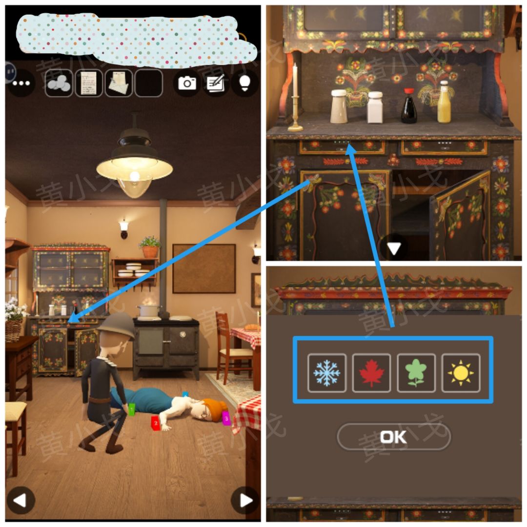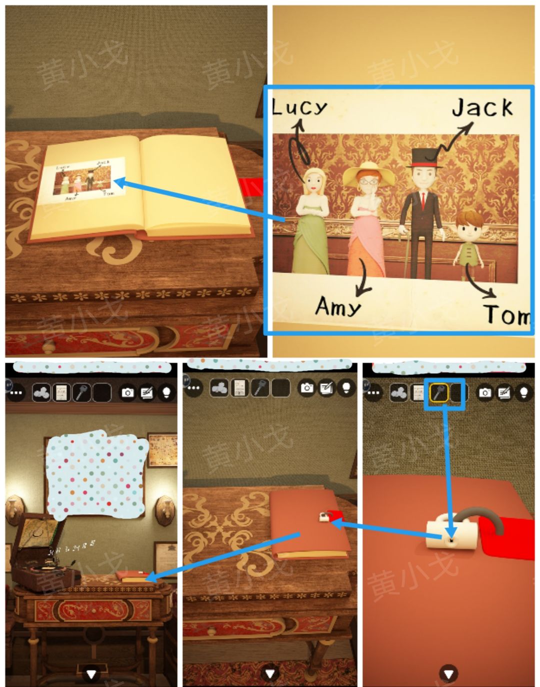 14.点击桌子上的日记本,用【钥匙】打开,查看照片