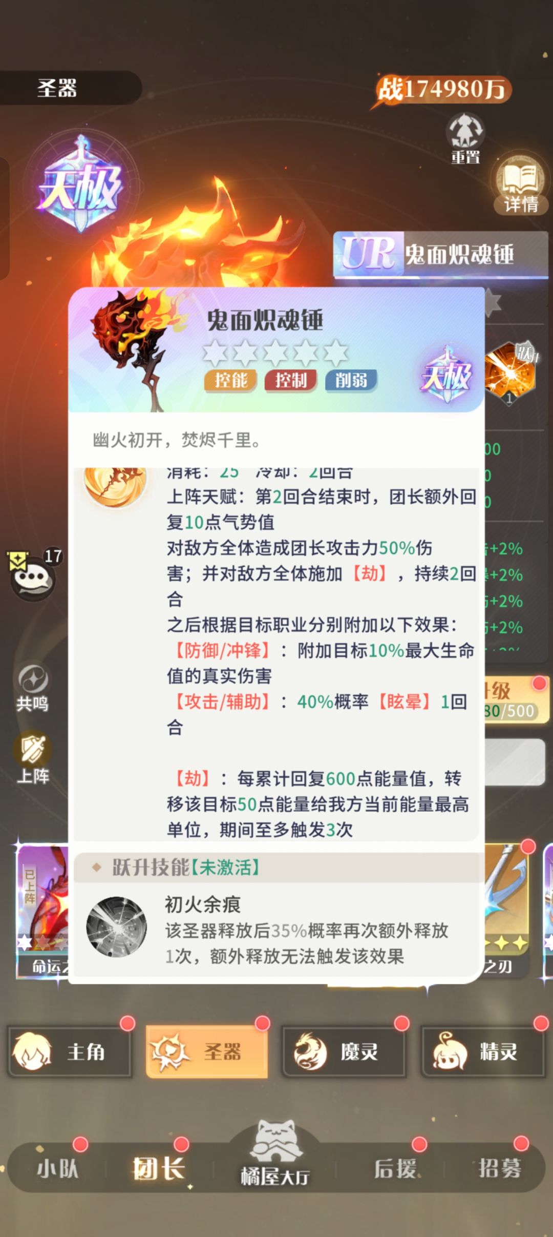 可以看看我的元素队,一阶焰舞,三阶厉火八星半神,零阶莉莉丝八星半神,练度不算差,但是用传统元素甚至打不赢带着疲劳的残队,在经过我的调整后,我改了思路,第一点把三个打手都放前排防止熊猫掉血太快直接晕了,第二点天启的作用是用他的羁绊,有40%能量减少抵抗,这样可以微微抵抗一下天极锤子的效果,然后对面进来是残血的,让对面吃一下技能通过魔灵龙来斩杀,形成快速减员启动圣器清队。