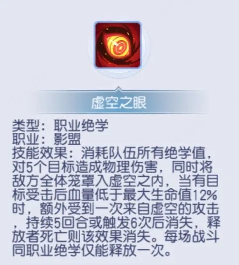 八件套:使用职业绝学后恢复己方300绝学能量值,虚空之眼触发次数上限提高2次,且伤害提升6%。