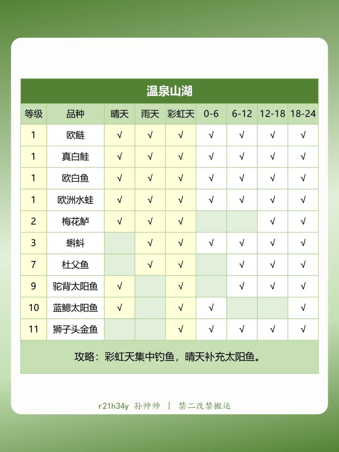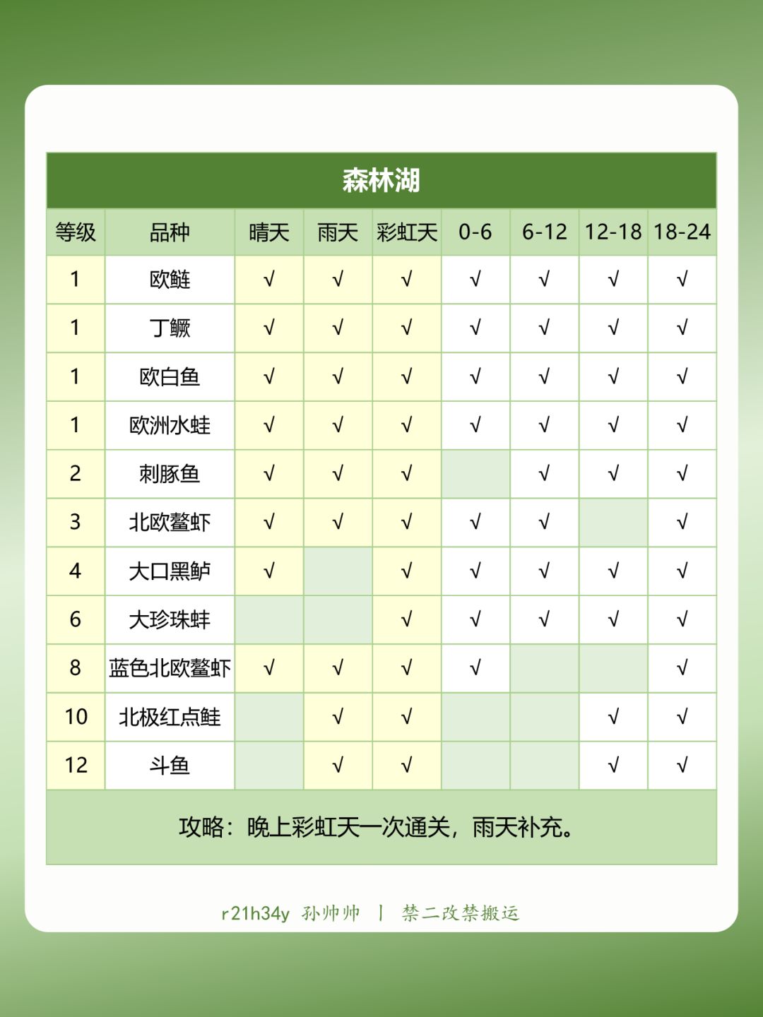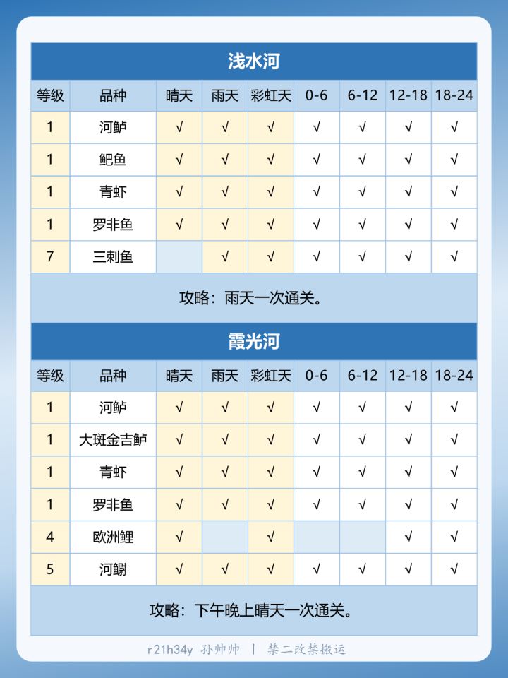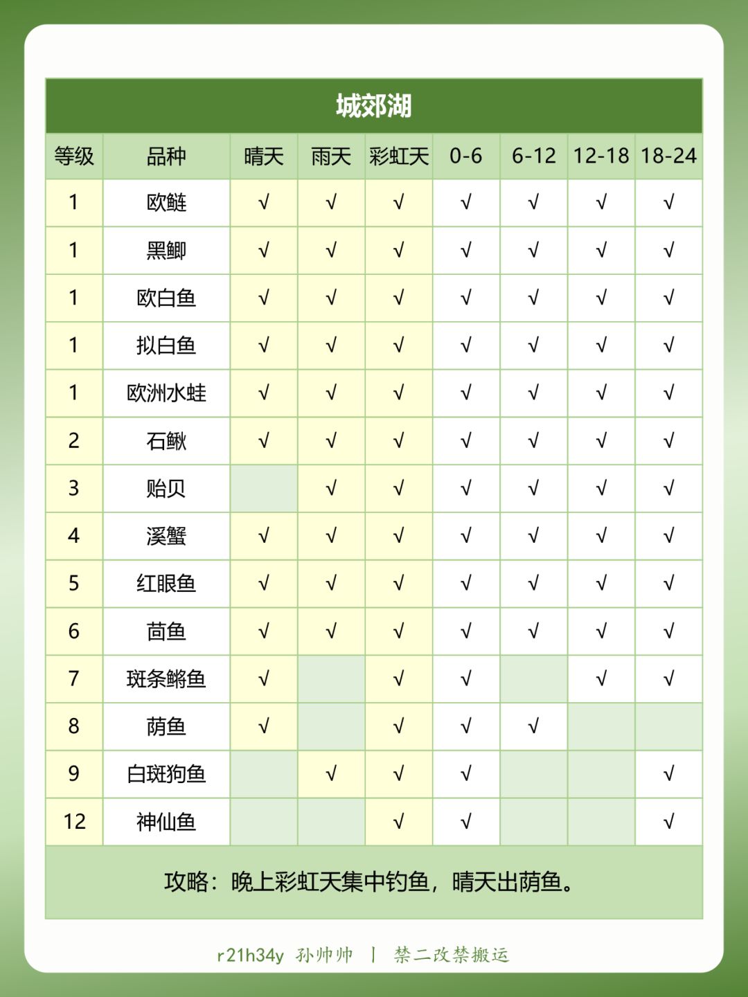 详细攻略在后图,力求一次出完同一片水域全部鱼的五星。