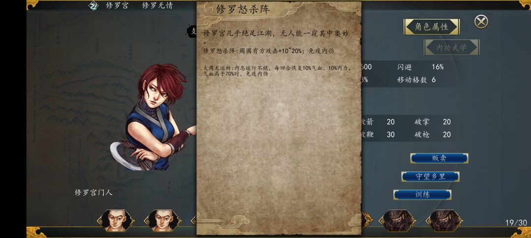 修罗怒杀阵!范围是两格,能叠加,后期真神!自带神行能全场支援,能用到结局。