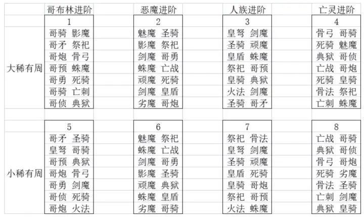 选择优先级为哥布林骑士,炮兵小队,暗黑影魔,哥布林预言者,骷髅弓箭手。前期初始军团强烈推荐哥布林骑士,也就是我们俗称的猪骑!有没有猪骑的推图速度就是两个级别,只要资源倾斜过去。前期在4-20之前基本不会出现卡图情况!如果脸黑或者懒得刷可以拿个影魔或者炮兵小队开局。