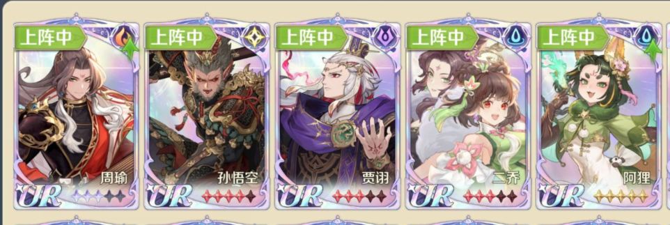 阵容分析:周瑜提供大量灼烧伤害,贾诩技能对负面状态敌人有高额增伤。孙悟空有极高的物理输出能力。二乔能够增加周瑜的灼烧伤害。阿狸的加命中,增伤对全队都有效果,还带有眩晕控制,降低敌方命中和暴击。