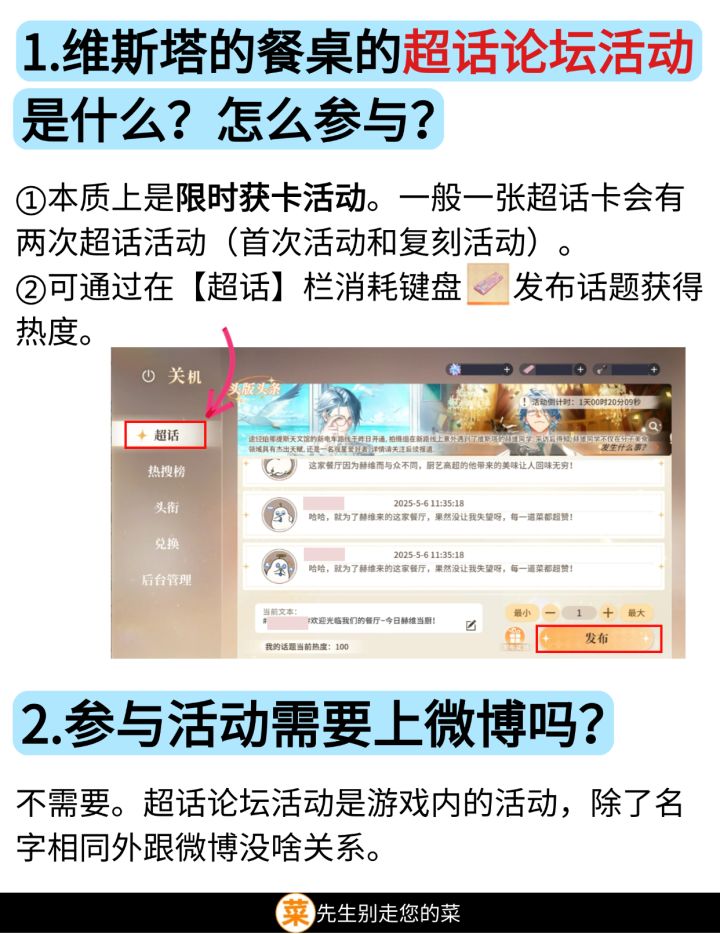 1.维斯塔的餐桌的超话论坛活动是什么?怎么参与?
