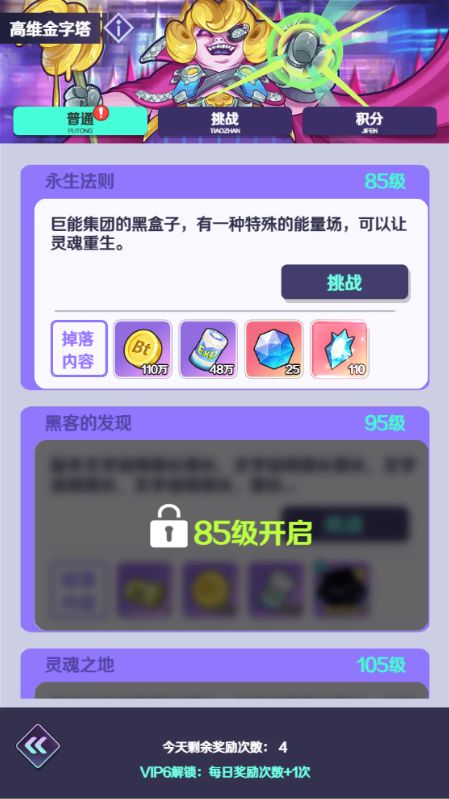 1.金字塔中普通副本每10级解锁一个。玩家等级符合挑战等级时即可挑战。最多可越级挑战下一10级的副本。