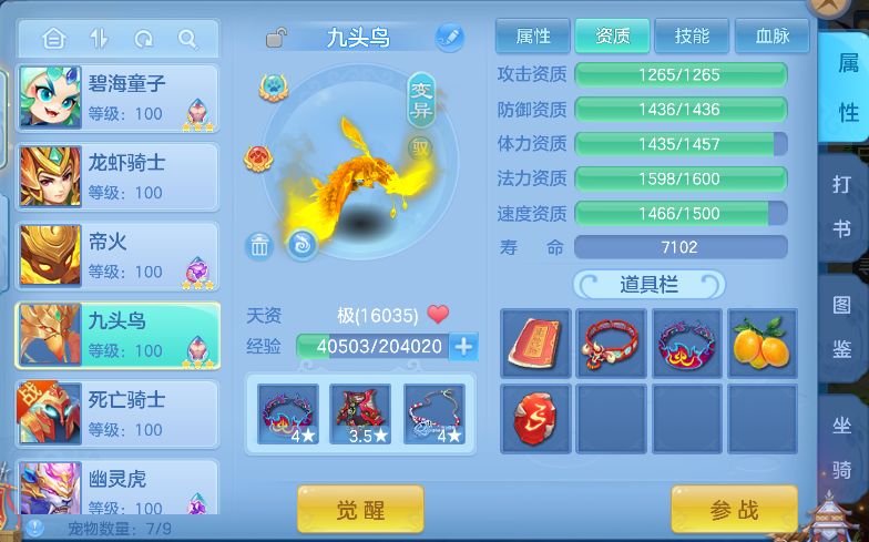 最后,如果只是日常玩家,建议只需洗一只九头鸟、一只芙蓉仙子(配速)、一只蛮熊(尾速),另外还有送的宝宝足够。