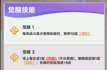 麒麟菇(火):火队主C,虽然目前因为普攻不算法伤,法c都比较拉胯,但凑火队还是能用的,需要3星解锁觉醒3的灼烧,拉等级天赋起码1,稳定灼烧输出