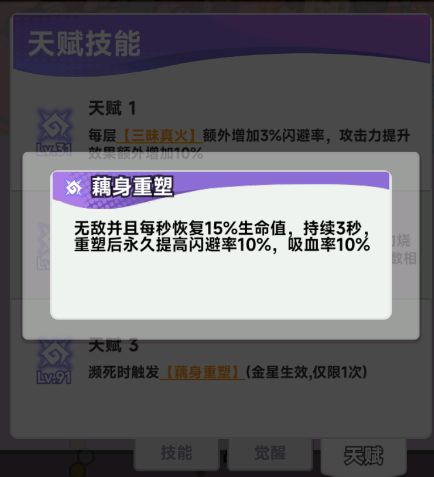 哪吒(火):后期主流肉,不吃星,吃等级,需要升到91级解锁天赋3——濒死无敌3秒