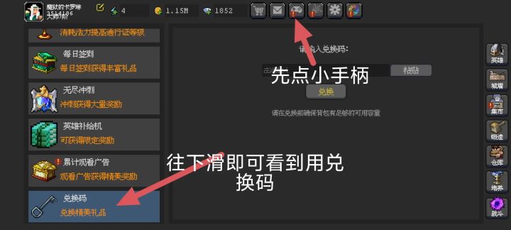 1. 礼包码(如图输入礼包码即可获得奖励)