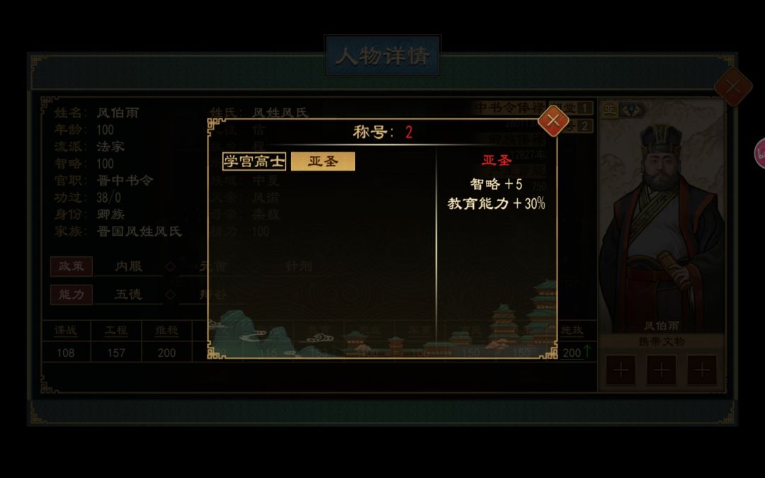 5.这些设置完之后这些设置完之后,每隔几年,他都会给你弹出几个事件,全部都选利诱,成功率高,当周游列国完之后,师长便能得到亚圣头衔