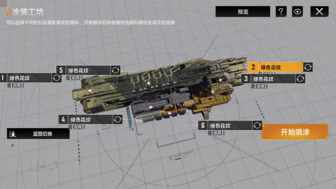 此外,在涂装工坊中所有舰船都会分为6个不同的分区,每个分区都可以进行自由喷涂,开拓者们可以选择所有分区纯色至上——使用同种颜料进行喷涂;也可以选择不同分区争奇斗艳——多种颜色混合使用。