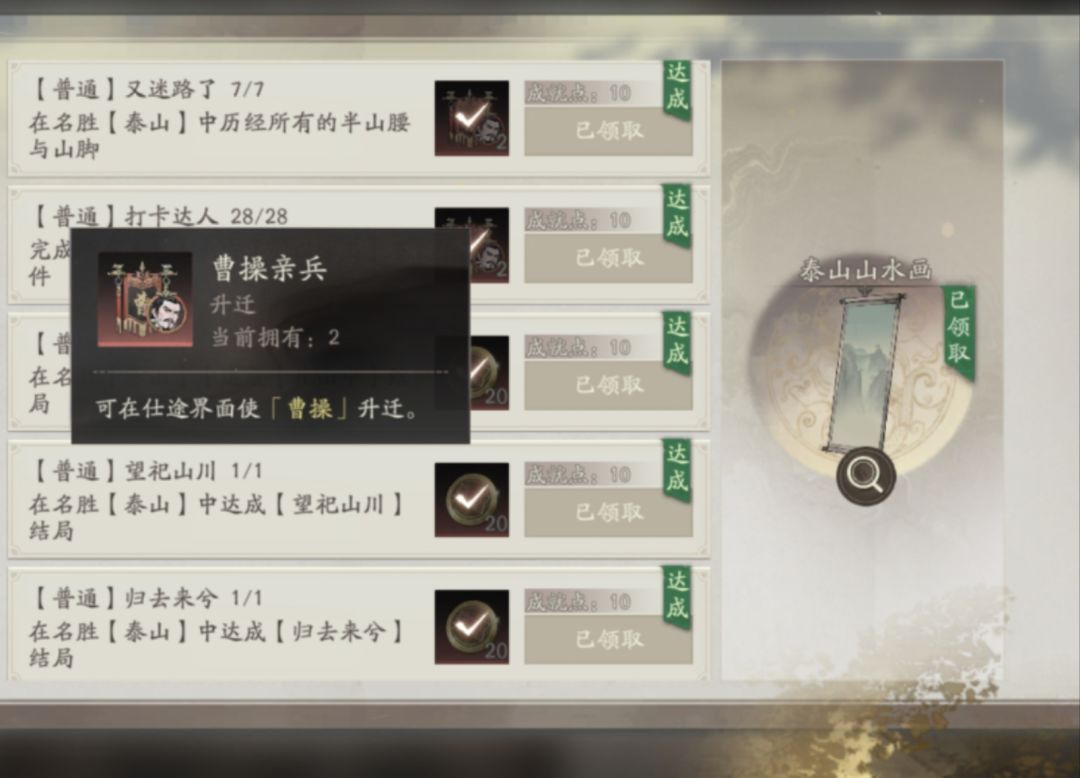 在泰山游玩中,我们不但可以获得巨量金珠,还能获得许多曹操升星碎片以及一个信物山水画,不想错过奖励的话就跟我一起速刷泰山吧(tips:泰山走到一半不满意可以强行退出,不扣次数)