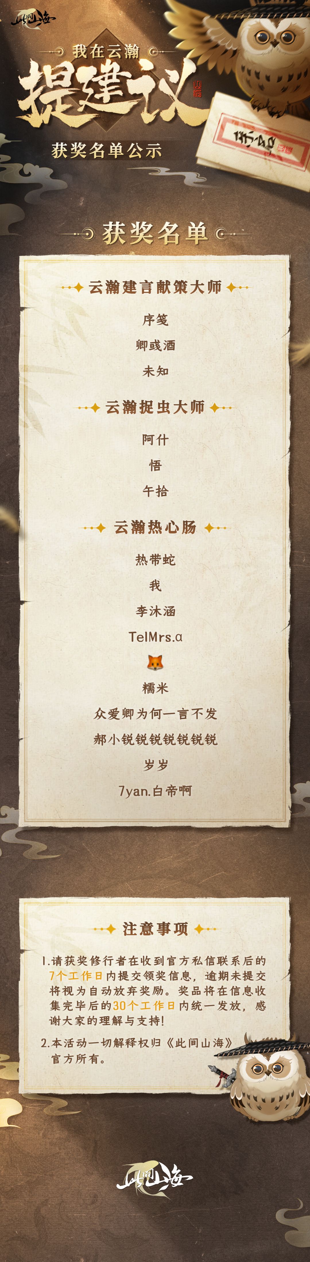 ※特别提醒:请各位获奖的修行者,在收到官方私信联系后的