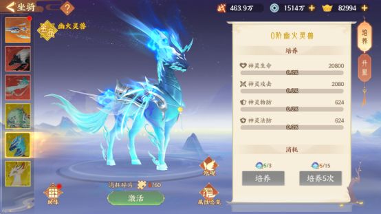 全新的养成系统,在坐骑开启之后,神君可以参与对应活动来获得坐骑