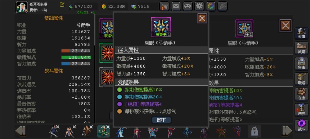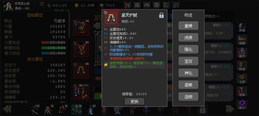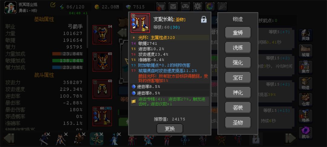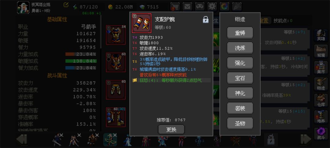 洗练就洗满血加攻速/城墙受伤加攻速20%(受伤加攻速8件装备只要一条就够,务必洗一条出来。不叠加)