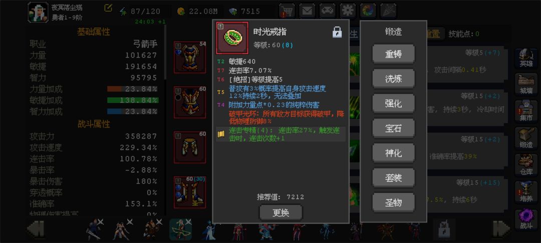 戒指推荐时光戒指毕竟加连击率(如果刷不到就拿高T的绝招戒指也行)