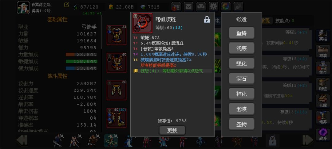 项链选择嗜血项链务必保证概率流血和普攻等级都是T5及以上词条,洗练冰冻,晕眩有能力就锁死洗两个负面词条出来!神化是技能+2(为了增加大招的攻速值)