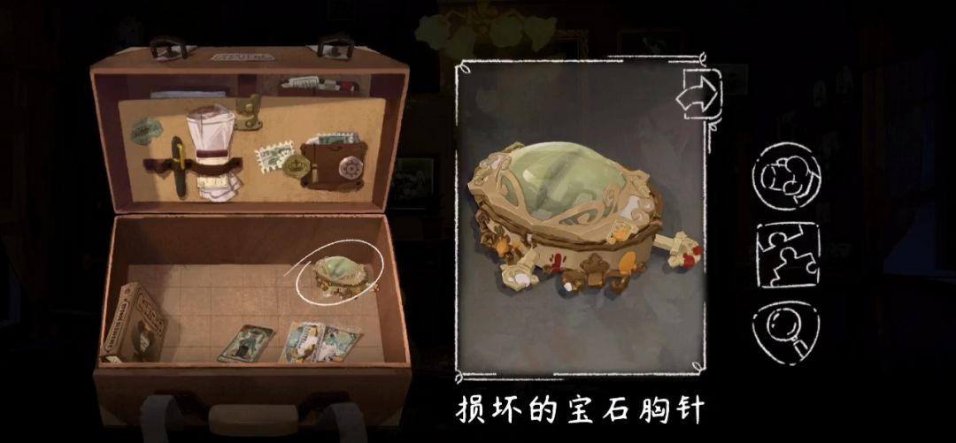 点击桌上的胸针后,胸针自动摆成这幅样子