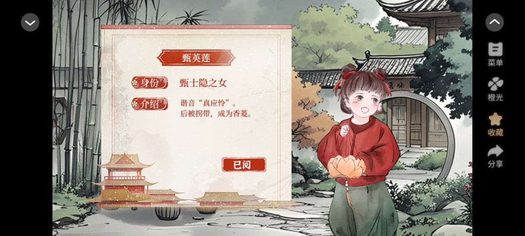 这款游戏,红楼梦改编版,人物贴近原著人物,剧情贴近原著剧情,其中不失夹杂着一些搞笑片段,更重要的是!每一个重要人物出场时还附带注解!