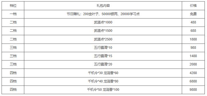 活动一:活动期间将限时上架节日礼包,礼包内容如下: