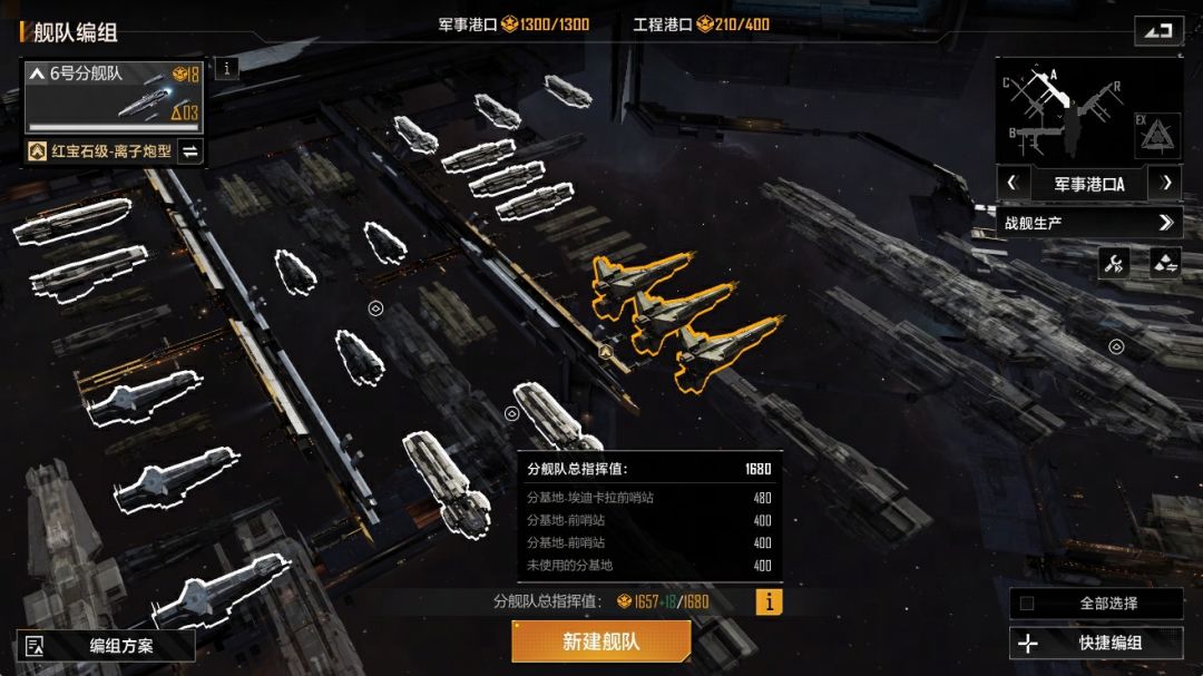 分舰队总指挥值上限根据每个分基地的军事港口容量加和计算。已部署的分舰队、无归属分舰队均会占用总指挥值上限,当分舰队总指挥值达到上限时,将不能部署基地舰船到分基地内。