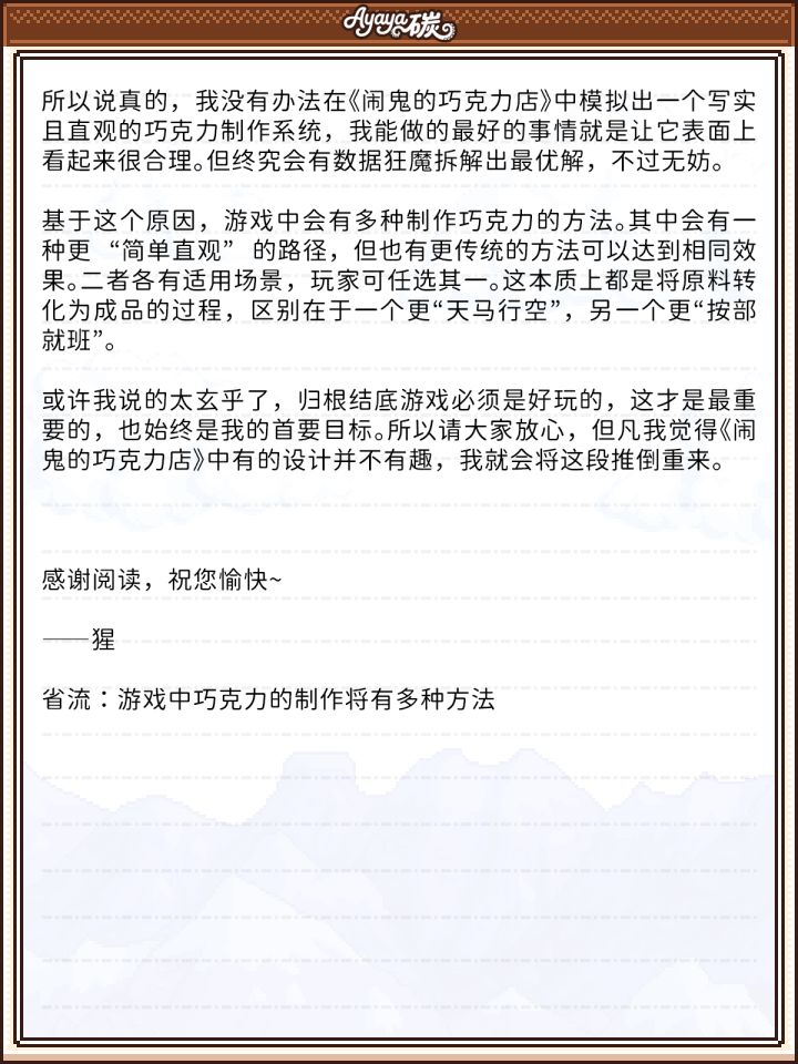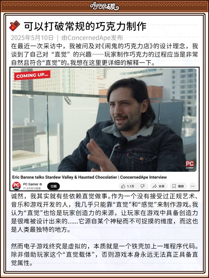 老乡!如果你经常冲浪应该有刷到过前段时间猩和PC Gamer的采访,在前几天(5月10日)猩也就那时的采访针对“巧克力的制作方法”进行了自己的设计思考介绍。