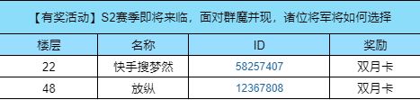 (已开奖)【有奖活动】S2赛季即将来临,诸位将军将如何选择