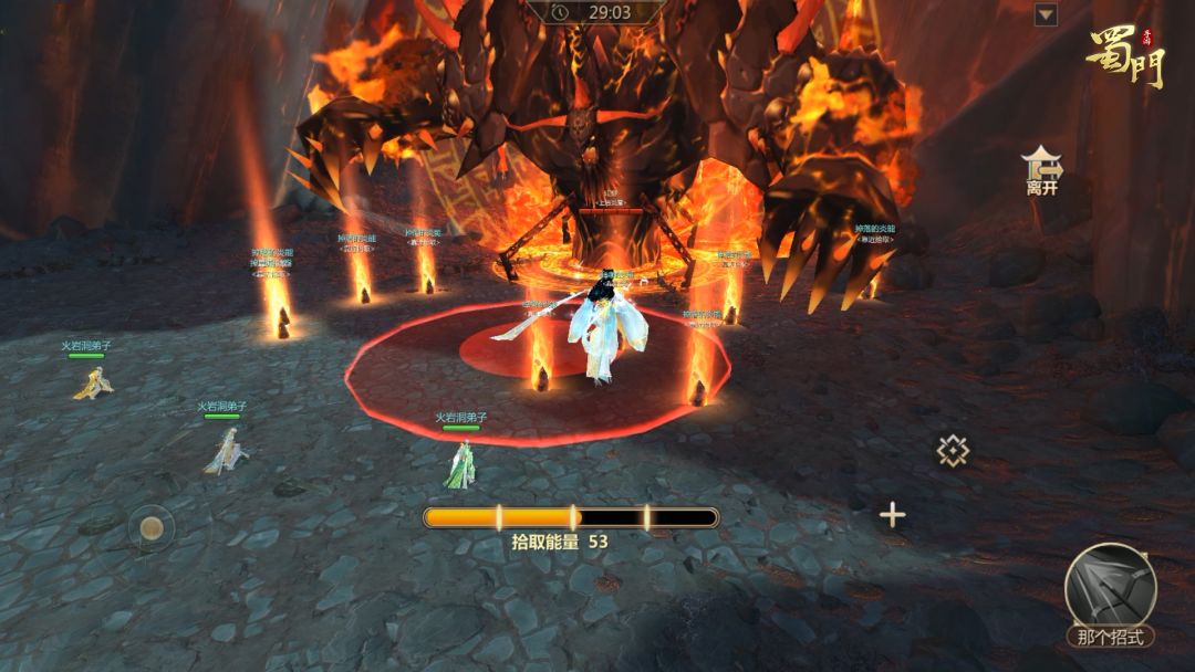 3.进入副本后,需要与火炎之主角力,拾取地面掉落的能量可使自身变大,当拾取达到100可解锁右下角的“那个招式”技能,以此击败火炎之主。此操作需重复两次,即可达成奇遇任务。