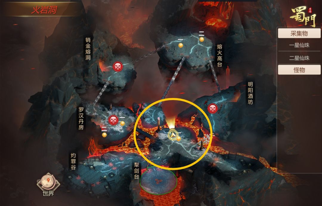 ✅达成细节:1.前往火岩洞下图黄圈位置,找到一个躺在地上的偷懒的卫兵,即可触发开启条件;