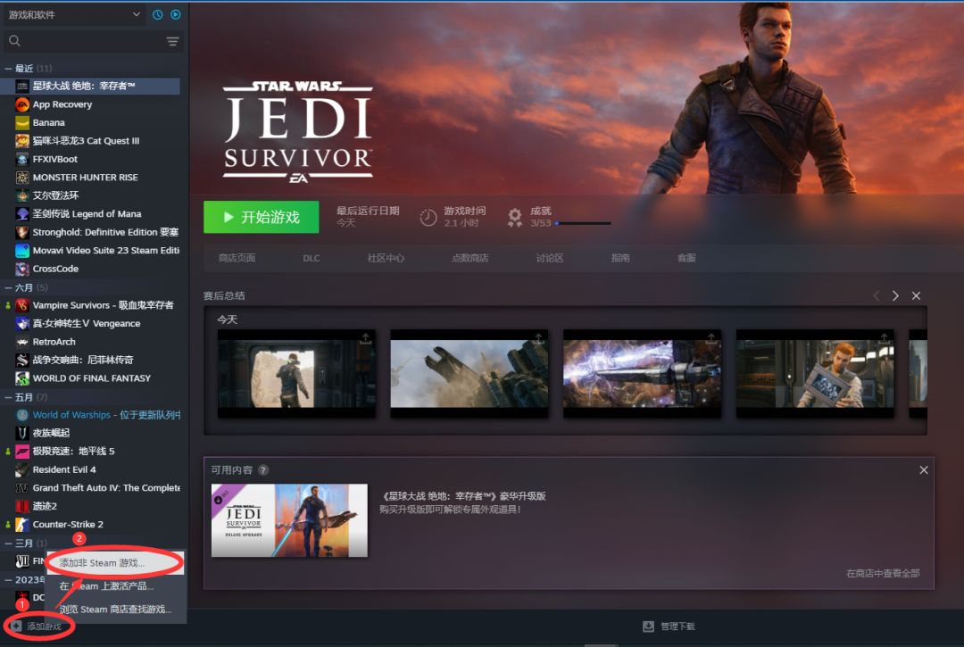 7.你库中的《星球大战 绝地:幸存者》正常显示屏幕截图,可正常上传截图到动态,可正常记录游戏时间并解锁成就(若无反应请重启Steam客户端)