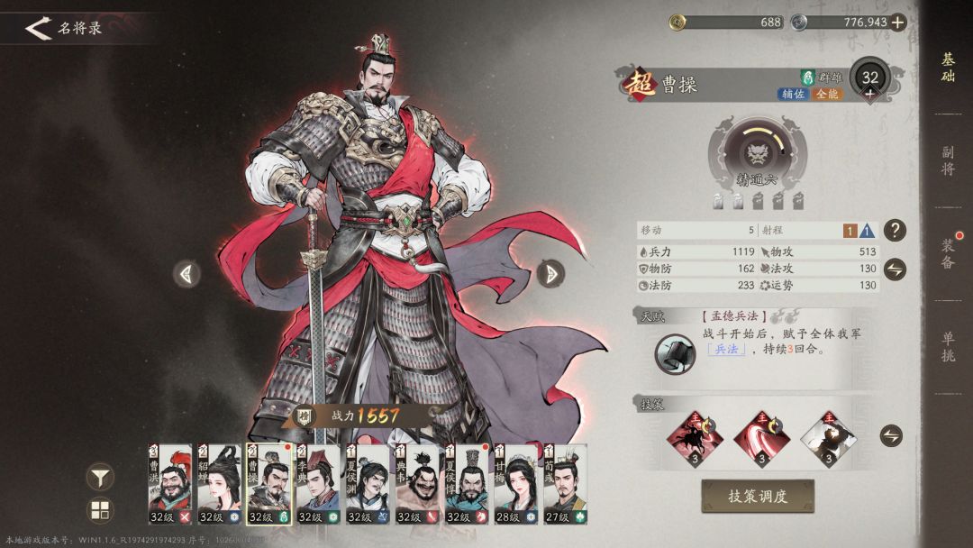 作为开局选择的主角,不但有着超强的辅助能力,可以给全队提供超多的增益,还有着不错的输出能力。而且还是超级别的武将,任务也送曹操亲兵,可以很容易升迁,可以一直用到后期。