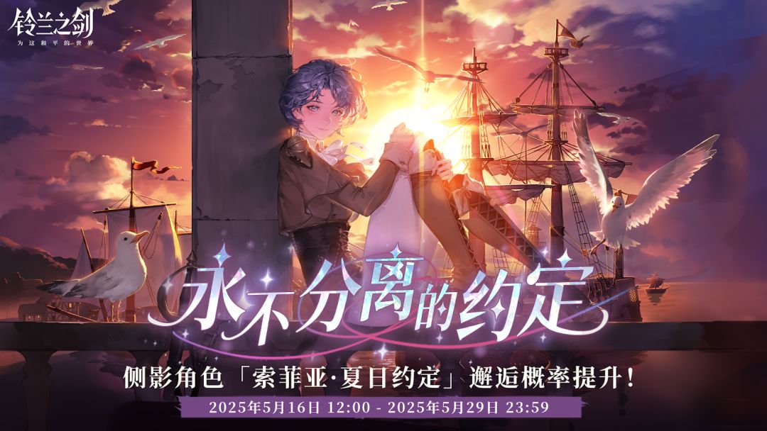「永不分离的约定」初遇限时邂逅将于 2025/05/16 12:00 - 2025/05/29 23:59 复刻,侧影角色「索菲亚·夏日约定」邂逅获取概率将大幅提升!