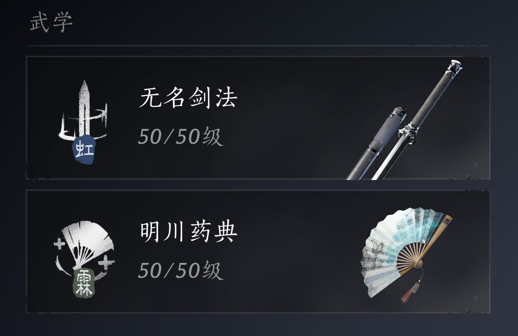 1、武器建议:新手佩戴:长剑+扇子。武学长剑:无名剑法(灵活,伤害可观,远距离可以磨血。)。扇子:明川药典(可以加血,增加容错。)