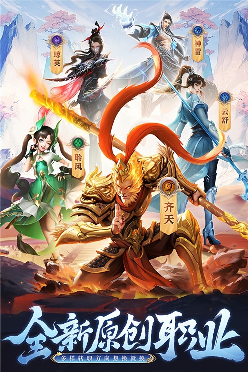 游戏开放了齐天、云舒、琼英、神雷、聆风等五大职业供玩家选择,每个职业都有独特的外观和技能特效。玩家可以自由选择转职方向,体验不同职业的乐趣,实现仙魔之间的转换,角色发展不受限制。