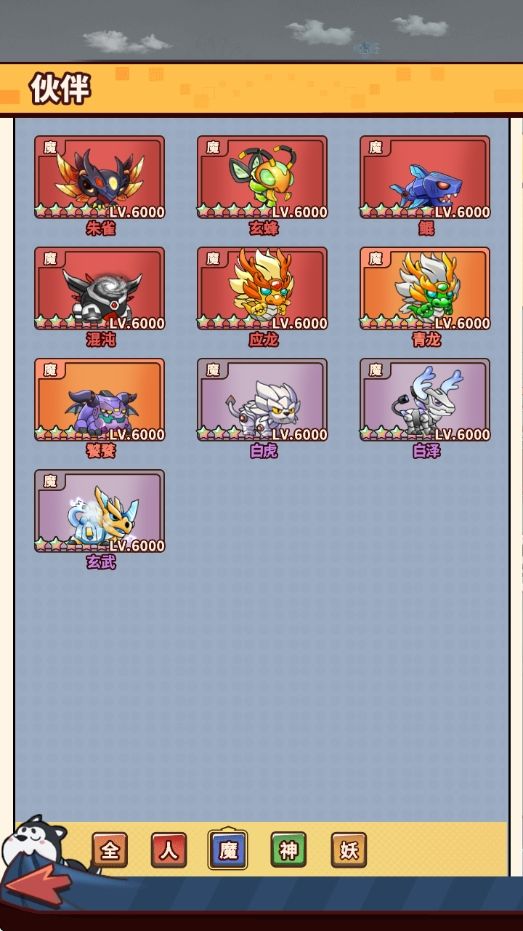 妖族伙伴,使用了西游记中的经典角色特性设定,众多伙伴都是出自于西游记中的妖族。
