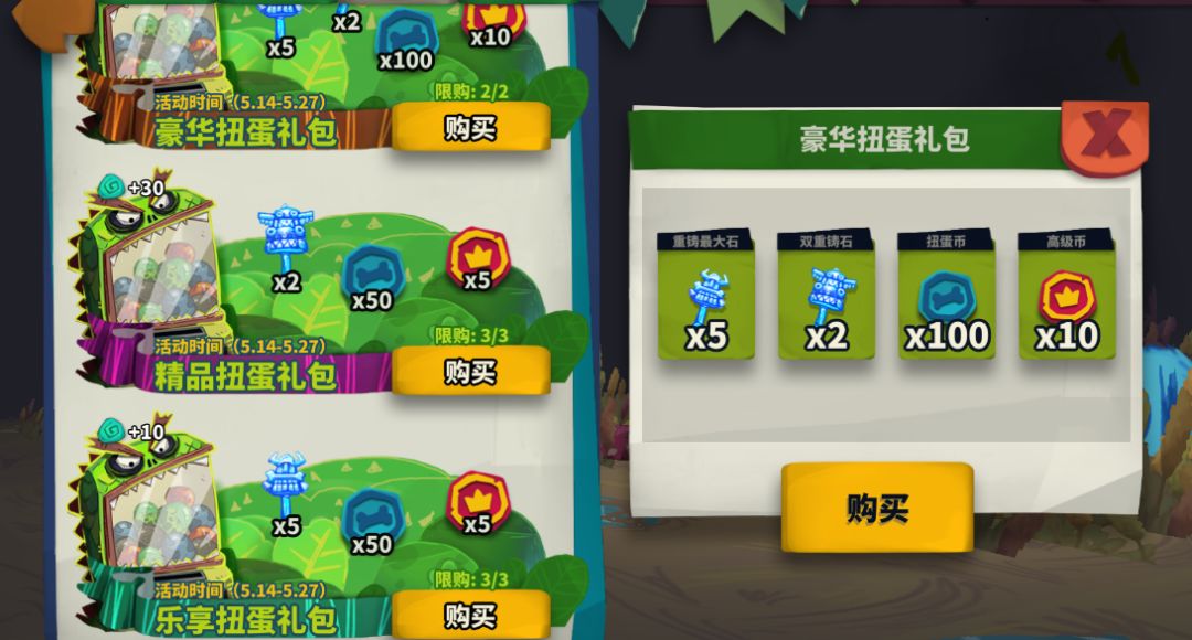 在活动期间,共有3种活动礼包可购买,分别是:豪华扭蛋礼包、精品扭蛋礼包以及乐享扭蛋礼包。其中豪华扭蛋礼包将同时包含重铸最大石和双重铸石作为奖励。
