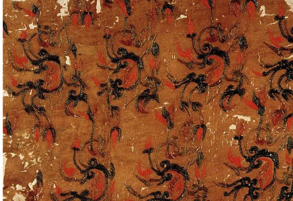诸葛亮服饰底纹可见茱萸纹,茱萸纹盛行于汉魏,是汉代少有的植物纹样之一,该纹样取自马王堆汉墓出土的娟地茱萸纹绣,形式优美,线条流畅飘逸自由,体现了汉代文化中简约而又灵动的绘画艺术。茱萸纹在当时寓有辟除不祥,祝颂长寿的涵意,隐含了诸葛亮出师未捷身先死的无尽遗憾。