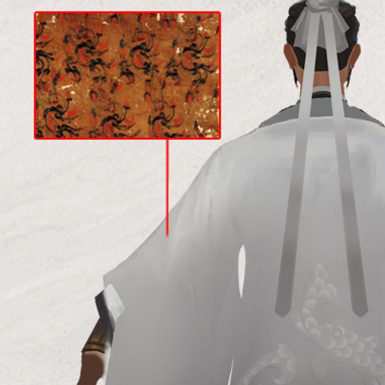 躬耕于南阳的诸葛亮如卧龙在渊,得遇明主后便腾飞九天,助刘备三分天下。正如《三国演义》所言:“卧龙凤雏,得一可安天下”。衣服上的龙纹参考了河南洛阳出土的汉代画像砖上的龙纹图样,简约大气,赋予了诸葛亮儒雅而又志存高远的气质。
