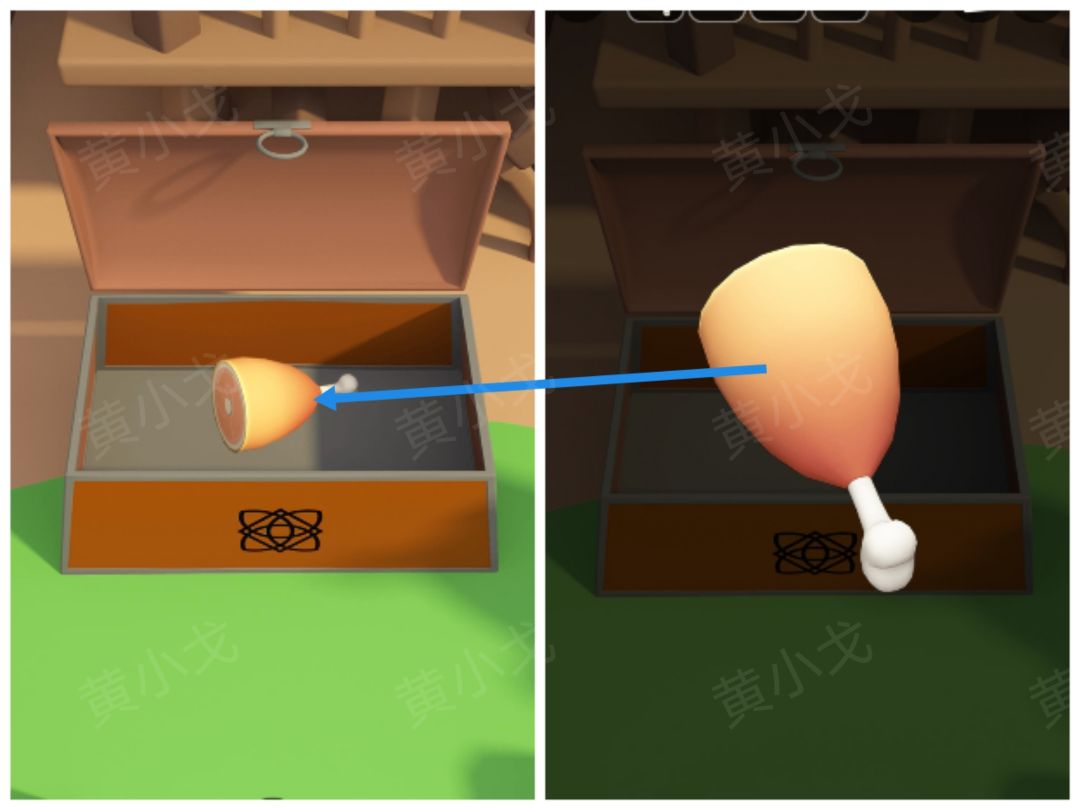 14.点击地上的箱子,根据[图腾-屋子]场景鸡腿片上的线索,调整密码锁