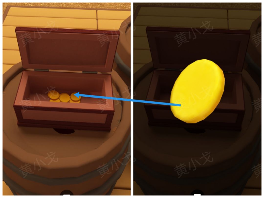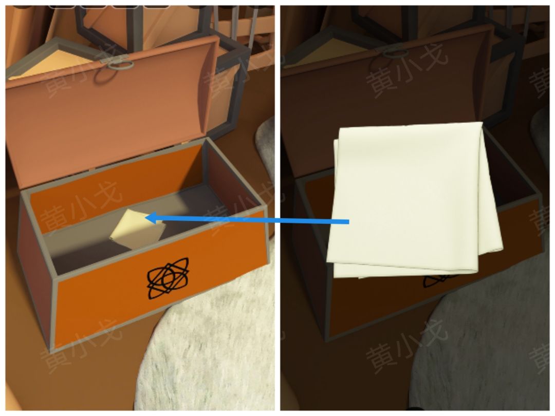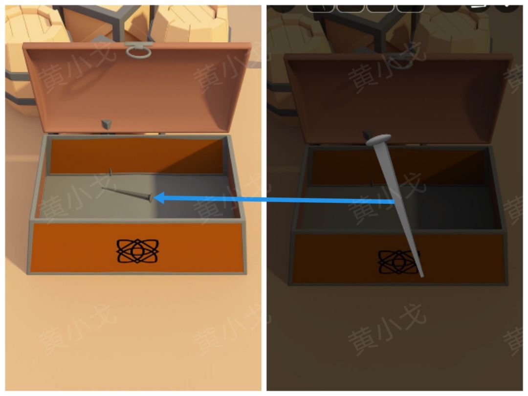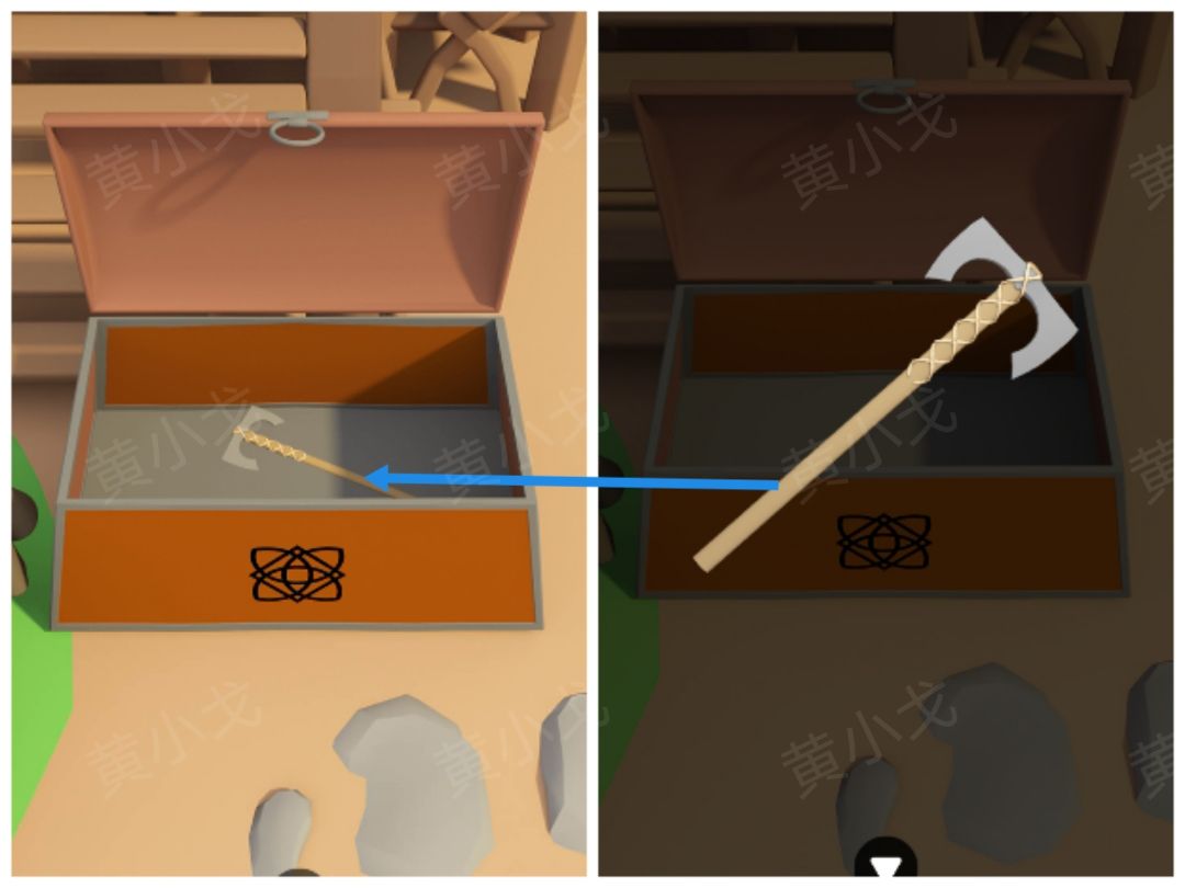 22.点击木桥左侧箱子上的密码锁,根据[图腾-屋子]场景宝石形状线索,调整密码锁