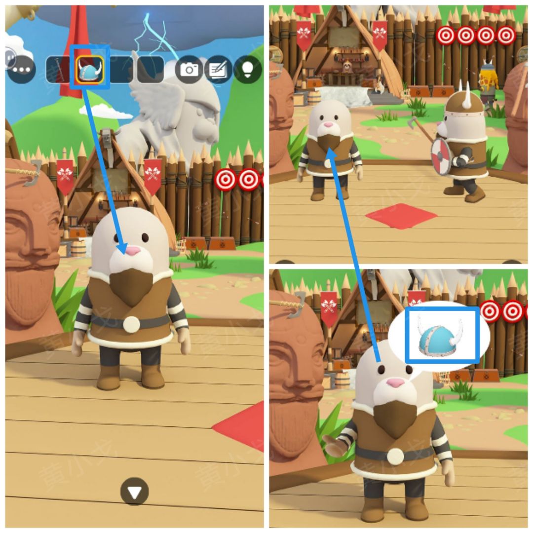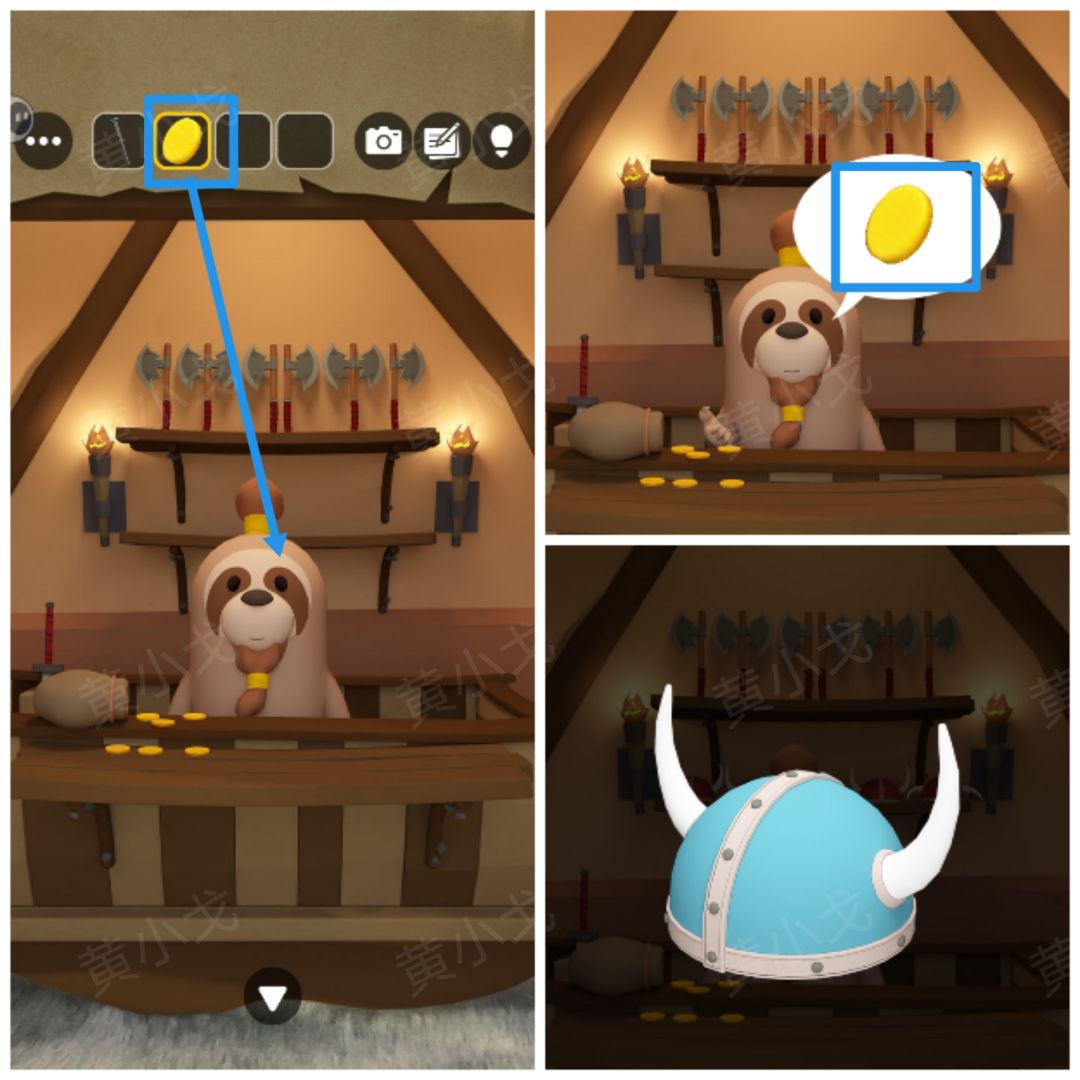 18.点击帐篷里的熊猫,拿【金饼】给它,获得【头盔】
